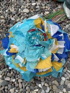 Inverted Florarium is an art installation at Center for the Arts that explores ecology, resilience, and perspective through softness, inversion, and the playful reimagining of a natural form. A large bloom, inspired by Wyoming’s state flower – the Indian Paintbrush (Castilleja spp.) — hovers, upside down, above a field of colorful blossoms. The flower’s tendrils connect and tether the shapes below. The surrounding glass courtyard functions as a terrarium, framing the installation as both ecosystem and specimen. Minton draws on the tradition of soft sculpture, while infusing the work with an ecological sensitivity and surreal humor. Minton’s artistic practice consistently engages with the intersection of human perception, natural form, and material use. The reclaimed paraglider wing fabric speaks to the transformation of manufactured objects into symbols of interconnection between people and nature. The sculpture’s softness is both material and metaphor — suggesting care, adaptability, and transformation. The play between micro and macro scale — the small wildflower made monumental — encourages viewers to reimagine the quiet power of native plants and the subtle intelligence of ecosystems.